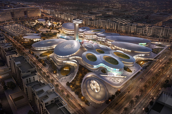 Madar Mall, with a built-up area of 3.9 million sq ft, is the anchor attraction and final phase of Madar, the family entertainment district at Aljada designed by Zaha Hadid Architects. The design of the district conceptualises the first moment a water droplet strikes the earth’s surface, captured in an array of elliptical buildings surrounded by lush green landscaping.